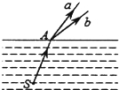 ![]() 2、选择题 如图所示,光源S从水下向空气斜射一束红蓝复色光,在A点分成a,b两束,则下列说法正确的是( ) 3、选择题 不定项选择