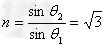 ? 由折射率定义得:n=sin45°/sin30°=1.4