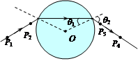 ①图中已画出P1P2的入射光线,请在图中补画出完整的光路图,并标出光从玻璃射入 空气的入射角θ1和折射角θ2。
