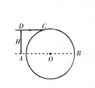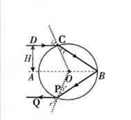 2、计算题 高速公路上的标志牌都用“回归反射膜”制成,夜间行车时,它能把车灯射出的光逆向返回。这种“回归反射膜”是用球体反射元件制成的。如图所示,透明介质球的球心位于O点,半径为R,光线DC平行于直径AOB射到介质球的C点,DC与AB的距离H=