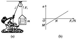 2、实验题  如图(a)所示,某人借助定滑轮将质量为m的货物提升到高处,测得货物加速度a与绳子对货物拉力FT之间的函数关系如图(b)所示。不计滑轮的摩擦,则: