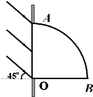 5、简答题 如图所示,AOB是1/4圆柱玻璃砖的截面,一束平行光以45°入射角射入玻璃砖的OA面,OA面以外的光线均被挡光板吸收.假设玻璃砖对此光线的折射率n=