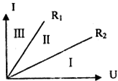 3、选择题 两个定值电阻 4、计算题 如图所示的电路中,电源电动势为E,内电阻不计,两电阻的阻值分别为R1和R2,在R2的两端并联上一段电阻忽略不计的导线L,求: 5、选择题 两个电阻的伏安特性曲线如图所示,则将它们并联后的总电阻的伏安特性曲线应位于哪个区域( ? ) |