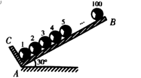 5、选择题 如图所示,100个大小相同、质量均为M的光滑小球 ,静止放置于两个相互垂直挡板上,平面AB与水平面夹角为30°,则?(?)