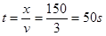 4、选择题 一小船在静水中的速度为3 m/s,它在一条河宽150 m,水流速度为4 m/s的河流中渡河,则( )