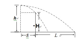 5、计算题  如图,已知排球网高H,半场长L,扣球点高h,扣球点离网水平距离s、求水平扣球速度的取值范围。