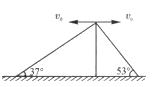 4、选择题  如图所示的两个斜面,倾角分别为37°和53°,在顶点两个小球A、B以同样大小的初速度分别向左、向右水平抛出,小球都落在斜面上,若不计空气阻力,则A、B两个小球平抛运动时间之比为(   )