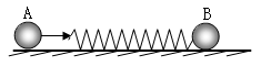 1、选择题  光滑地面上放着两钢球A和B,且mA<mB,B上固定着一轻弹簧,如图所示,现在A以速率v0碰撞静止的B球,有:(? )?