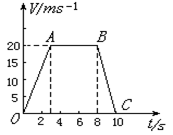参考答案:(1)质点在OA段做匀加速直线运动;质点在AB段做匀速直线运动;质点在BC段做匀减速直线运动。(2)