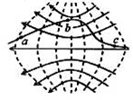 4、选择题 如图所示是阴极射线示波管的聚焦电场。实线为电场线,虚线为等差等势线。a、b、c为从左侧进入聚焦电场的电子运动的轨迹上的三点。不计电子的重力,则