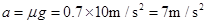 5、计算题 在交通事故的分析中,刹车线的长度是很重要的依据。刹车线是汽车刹车后,停止转动的轮胎在地面上滑动至静止留下的滑动痕迹,如图所示。在某次交通事故中,汽车在水平路面上留下的刹车线长度为14m,汽车轮胎与路面间的动摩擦因数为0.7。若将汽车刹车过程简化为匀减速直线运动,g 取10m/s2,求: