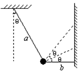 4、选择题 如图所示,用与竖直方向成θ角(θ<45°)的倾斜轻绳a和水平轻绳b共同拴住一个质量为m小球,这时,这时绳b的拉力为T1。现保持小球在原位置不动,使绳b在原竖直平面内逆时针转过θ角固定,绳b的拉力变为T2;再转过θ角固定,绳b的拉力为T3,则