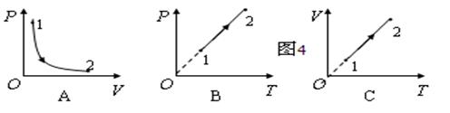 3、计算题  如图所示,一竖直放置的、长为L的细管下端封闭,上端与大气(视为理想气体)相通,初始时管内气体温度为 4、填空题  若一定质量的理想气体分别按下图4所示的三种不同过程变化,其中表示等压变 5、简答题  如图所示,有三个不同的恒温箱A、B、C,内装同种理想气体,温度分别为 |