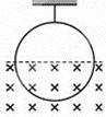 4、选择题 如图所示,质量为m的金属环用线悬挂起来,金属环有一半处于与环面垂直的匀强磁场中,从某时刻开始,磁感应强度均匀减小,则在磁感应强度均匀减小的过程中,关于线拉力的大小,下列说法中正确的是(?)