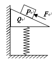 5、选择题 如图所示,物块P放在直角三角形斜面体Q上,Q放在弹簧上面并紧挨着竖直墙壁,初始时P、Q静止。现用力F沿斜面向上推P,但P和Q并未运动。下列说法正确的是
