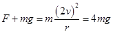 ,当小球到达最高点速率为2v时,应有