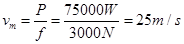 3、选择题 如果卡车发动机的额定功率为75kW,它受到的阻力恒为3×103N,则这辆卡车的速度最大能达到