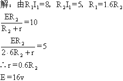 参考答案:AC 本题解析:当滑动变阻器滑片P向右移动时,R1的阻值减小,电路总电阻减小,总电流变大,即A读数变大;路端电压减小,故V3减小;R2两端的电压变大,故V2变大;因为V3=V1+V2,则V1减小;选项A正确,B错误;因为V3=V1+V2,则 本题难度:一般 3、简答题 两只内阻不知的电压表串联后接在电源的两极间,表A的读数8V,表B读数5V,表B单独接在电源两极间,表B的读数为10V,求电源电动势 参考答案:16V 本题解析: 本题难度:一般 4、选择题 如图所示电路中,当变阻器R3的滑动头P向b端移动时,下列判断中正确的是 参考答案:B 本题解析: 本题难度:一般 5、填空题 如图所示,滑动变阻器R1的最大阻值是100Ω,R2=100Ω,A、B两端电压恒定为10V.当电键S断开时,移动滑动变阻器滑片P,电压表示数范围是______V;当电键S闭合时,移动滑动变阻器滑片P,电压表示数范围是______V. 参考答案:当电键S断开时,滑片滑到最下端时,变阻器与电阻R2串联,滑动变阻器滑片P滑到最上端时,电压表的示数最大,等于100V;当滑片滑到最下端时,电压表示数最小,最小值为U=R2R1+R2UAB=5V,电压表示数范围是5~10V. 本题解析: 本题难度:一般 |