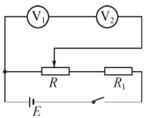 (评分意见:V1与V2串联1分,变阻器分压连接1分,R1做为保护电阻连接正确1分)