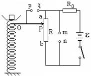5、实验题 在科技活动中某同学利用自制的电子秤来称量物体的重量,如图所示为电子秤的原理图。滑动变阻器的滑动片的上端与弹簧上端连接,托盘和弹簧的质量均不计。当托盘中没有放物体时,滑动头刚好在a点,且电压表示数为零;当托盘中的物体质量改变时,电压表示数发生相应的改变,从而测出物体的质量。设变阻器的总电阻为R,总长度为L,电源电动势为E,内阻为零,弹簧劲度系数为k,不计一切摩擦和其它阻力,电压表为理想表,重力加速度为g。