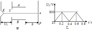 2、简答题 如图甲所示,真空中的电极K连续不断地发出电子(电子的初速度可忽略不计),经电压为u的电场加速,加速电压u随时间t变化的图象如图乙所示.每个电子通过加速电场的过程时间极短,可认为加速电压不变.电子被加速后由小孔S穿出,沿两个彼此靠近且正对的水平金属板A、B间中轴线从左边缘射入A、B两板间的偏转电场,A、B两板长均为L=0.20m,两板之间距离d=0.050m,A板的电势比B板的电势高.A、B板右侧边缘到竖直放置的荧光屏P(面积足够大)之间的距离b=0.10m.荧光屏的中心点O与A、B板的中心轴线在同一水平直线上.不计电子之间的相互作用力及其所受的重力,求:
