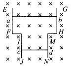 5、选择题 如图所示,上下不等宽的平行金属导轨的EF和GH两部分导轨间的距离为2L,IJ和MN两部分导轨间的距离为L,导轨竖直放置,整个装置处于水平向里的匀强磁场中,金属棒ab和cd的质量均为m,都可在导轨上无摩擦地滑动,且与导轨接触良好。现对金属棒ab施加一个竖直向上的作用力F,使其匀速向上运动,此时cd处于静止状态,则F的大小为
