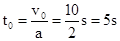 1、计算题  汽车刹车时以10m/s的速度行驶,刹车后获得2m/s2的加速度,则