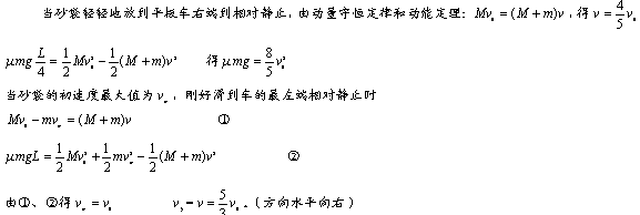 ,若将砂袋以水平向左的速度从车的右端扔到平板车上,为了不使砂袋从车上落下,砂袋的初速度的最大值是多少?若砂袋刚好从车上落下,求小车最终速度的大小和方向?