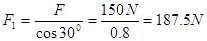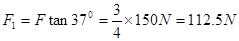 4、填空题 把竖直向下的150N的力F分解为两个分力,分力F1的方向水平向东,分力F2的方向和竖直方向成37?角,则F1=?N,F2=?N 。(sin37?=0.6,? cos37?=0.8)
