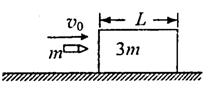 ![]() 图8 2、计算题 如图所示,质量为m的木块静止在光滑水平面上,一质量也为m的子弹以速度v0水平射入木块,子弹恰好未从木块中射出。设木块对子弹的阻力为恒力,其大小为F。 3、计算题 如图所示,在光滑水平面上有木块A和B,mA=0.5kg,mB=0.4kg,它们的上表面是粗糙的,今有一小铁块C,mC=0.1kg,以初速v0=20m/s沿两木块表面滑过,最后停留在B上,此时B、C以共同速度v=3m/s运动,求:(1)A运动的速度vA=? 4、实验题 气垫导轨工作时能够通过喷出的气体使滑块悬浮从而基本消除掉摩擦力的影响,因此成为重要的实验器材,气垫导轨和光电门、数字毫秒计配合使用能完成许多实验. 5、计算题 如图所示,质量为3m、长度为L的木块置于光滑的水平面上,质量为m |