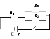 5、选择题  在如图电路中,已知电源电动势E=6V,r=1Ω,R1=2Ω,R2=6Ω,R3=6Ω,则流过电源的电流大小为 (? )