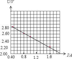 电源内阻为:r=△U△I=2.6-2.21.6-0.8=0.5Ω