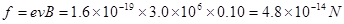 本题解析:电子受到的洛伦兹力