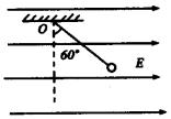 5、选择题 如图所示,质量为m的小球用绝缘细线悬挂在O点,放在匀强电场中,在图示位置处于平衡状态.匀强电场场强的大小为E,方向水平向右,那么小球的带电性质是____(正或负),其带电量q= __。