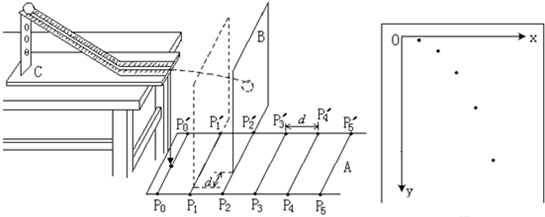 与弹簧压缩量x之间的函数关系式为?(k为比例系数)A. ? B. ? C. ? D.![]() (3)你认为 与x的关系式中的比例系数k与弹簧的什么因素有关?5、实验题 某同学设计了一个研究平抛运动的实验。实验装置示意图如图所示,A是一块平面木板,在其上等间隔地开凿出一组平行的插槽(图中 |