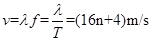 s="0.4" s,A、B在4 s内完成的全振动相差2次,即AB间相距两个波长:2λ="1.2" m,λ="0.6" m,即v=