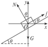 3、计算题 如图所示,倾角为θ的斜面固定于电梯中,当电梯加速度为a竖直向上加速运动时,质量为m的物体始终与斜面保持相对静止,则物体受到的支持力和摩擦力是多大?