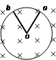4、选择题 金属圆环的圆心为o,金属棒oa、ob与金属环接触良好且可绕o在环上转动,整个装置处于垂直纸面向里的匀强磁场中,如图所示,当外力使oa顺时针方向加速转动时,在oa追上ob之前,ob将