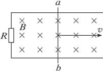 5、选择题  如图4所示,金属杆ab以恒定的速率v在光滑平行导轨上向右滑行.设整个电路中总电阻为R(恒定不变),整个装置置于垂直纸面向里的匀强磁场中,下列叙述正确的是()