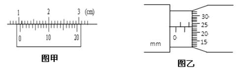 4、实验题 (4分)有一游标卡尺,主尺的最小分度是1mm,游标上有20个小的等分刻度。用它测量一小球的直径,如图甲所示的读数是?mm。用螺旋测微器测量一根金属丝的直径,如图乙所示的读数是?mm。