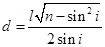 3、计算题 如图所示,一束激光从O点由空气射入厚度均匀的介质,经下表面反射后,从上面的A点射出。已知入射角为i,A与O相距l介质的折射率为n,试求介质的厚度d。