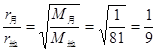 5、选择题 地球质量大约是月球质量的81倍,在登月飞船通过月、地之间的某一位置时,月球和地球对它的引力大小相等,该位置到月球中心和地球中心的距离之比为