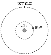 4、选择题 1980年10月14日,中国科学院紫金山天文台发现了一颗绕太阳运行的小行星,2001年12月21日,经国际小行星中心和国际小行星命名委员会批准,将这颗小行星命名为“钱学森星”,以表彰这位“两弹一星”的功臣对我国科技事业做出的卓越贡献。若将地球和“钱学森星”绕太阳的运动看作匀速圆周运动,它们的运行轨道如图所示。已知“钱学森星”绕太阳运行一周的时间约为3.4年,设地球绕太阳运行的轨道半径为R,则“钱学森星”绕太阳运行的轨道半径约为