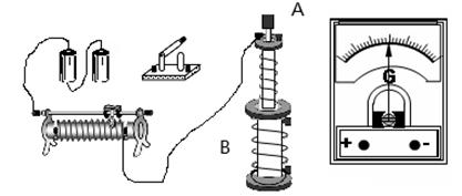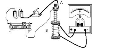 本题解析:将A线圈迅速插入B线圈时,使B线圈中的磁通量变大,这与闭合开关S时的情况一样,根据楞茨定律,灵敏电流计指针将向右偏转;滑动变阻器触头迅速向左拉动时,电流变小,A线圈的磁感应强度变大,根据楞茨定律,灵敏电流计指针将向左偏转。