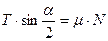 1、计算题 (8分)如右图所示,两个完全相同的物块,重力大小为G,两球与水平面的动摩擦因数都为μ,一根轻绳两端固定在两小球上,在绳的中点施加一个竖直向上的拉力,当绳子被拉直后,两段绳的夹角为α,问当F至少为多大,两物块将会发生滑动?(设物块受到的最大静摩擦力等于滑动摩擦力)