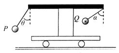 参考答案:D 本题解析:静止时,由平衡条件得: 本题难度:一般 2、选择题 如图,一小车上有一个固定的水平横杆,左边有一轻杆与竖直方向成θ角与横杆固定,下端连接一质量为m的小球P。横杆右边用一根细线吊一相同的小球Q。当小车沿水平面做加速运动时,细线保持与竖直方向的夹角为α。已知θ<α,则下列说法正确的是( ) |