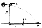 2、计算题 如图所示,在一次空地演习中,离地H高处的飞机以水平速度v1发射一颗炮弹欲轰炸地面目标P,反应灵敏的地面拦截系统同时以速度v2竖直向上发射炮弹拦截。设拦截系统与飞机的水平距离为s,若拦截成功,不计空气阻力,则v1、v2的关系应满足?