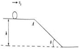 4、计算题  (10分)如图所示,一高度为h="0." 2 m的水平面在A点处与一倾角为θ=30°的斜面连接,一小球以v0="5" m / s的速度在平面上向右运动,求小球从A点运动到地面所需的时间(平面与斜面均光滑,取g="10" m / s2)。