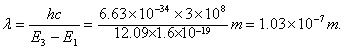 (3)计算这几条光谱线中波长最短的一条的波长。