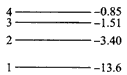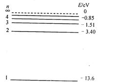 是不稳定的,能自发地发生衰变。①完成 衰变反 应方程 ?。② 衰变为 ,共经过?次 衰变,?次 衰变。(3)氢原子的能级如图所示,有一群处于n=4能级的氢原子。如果原子n=2向n=1跃迁所发生的光正好使某种金属材料产生光电效应,则: ①这群氢原子发出的光谱中共有几条谱线能使该金属产生光电效应? ②从能级n=4向n=1发出的光照射该金属材料,所产生的光电子的最大初动能为多少? ![]() 4、选择题 氢原子的部分能级如图所示,已知可见光的光子能量在1.62 eV到3.11 eV之间,由此可推知,氢原子 5、选择题 不定项选择